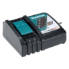 Caricabatterie rapido 18V LTX DC18RC per batterie Makita a slitta LXT da 14,4 V e 18 V. Dotato di una ventola di raffreddamento che raffredda la batteria per consentire una ricarica più rapida. Ricarica ottimizzata in termini di tensione, corrente e temperatura. Ricarica una batteria in 15-55 minuti, a seconda della capacità della batteria.