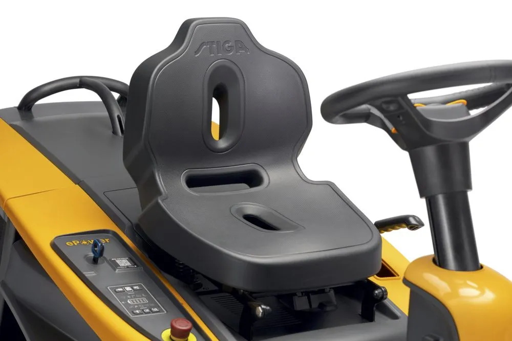 Inoltre, questo trattorino elettrico è progettato per ogni livello di esperienza di taglio dell’erba. Basta sedersi, premere il pulsante di avvio singolo e partire. Il baricentro molto basso e lo sterzo leggero semplificano anche le operazioni di taglio più impegnative, mentre l’ergonomia avanzata ti mantiene comodo e sicuro in ogni curva.